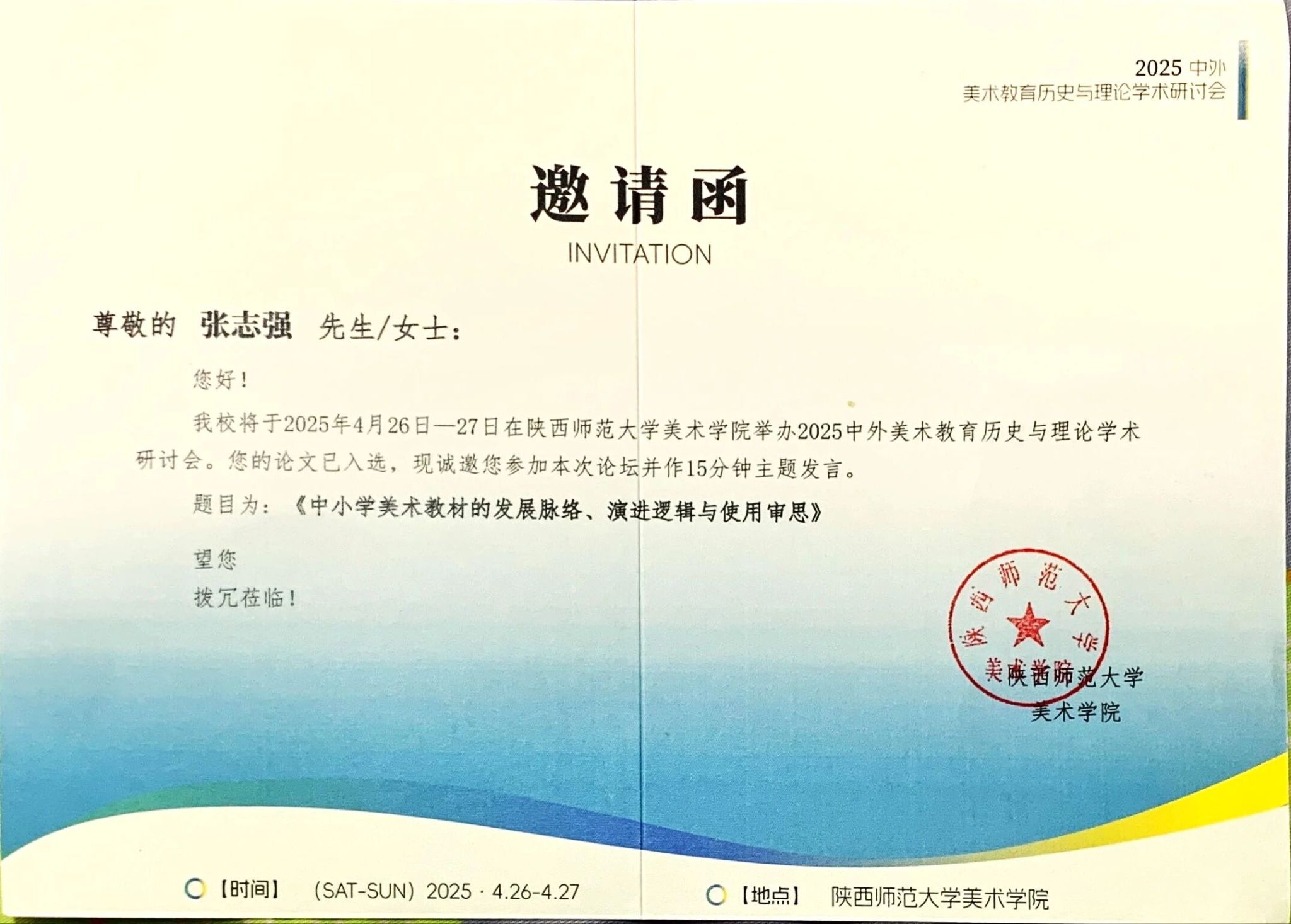 4月26日至27日,“2025中外美术教育历史与理论研讨会”在陕西师范大学召开。本次会议由陕西师范大学主办,陕西师范大学美术学院承办,论坛以“美术教育历史与理论”为研讨主题,包括“中外美术教育历史研究”“中外美术教育理论研究”“创新型美术教育教师培养与发展”三方面内容,旨在立足中外美术教育历史发展,聚焦数智时代美术教育创新,探索创新型人才培养。