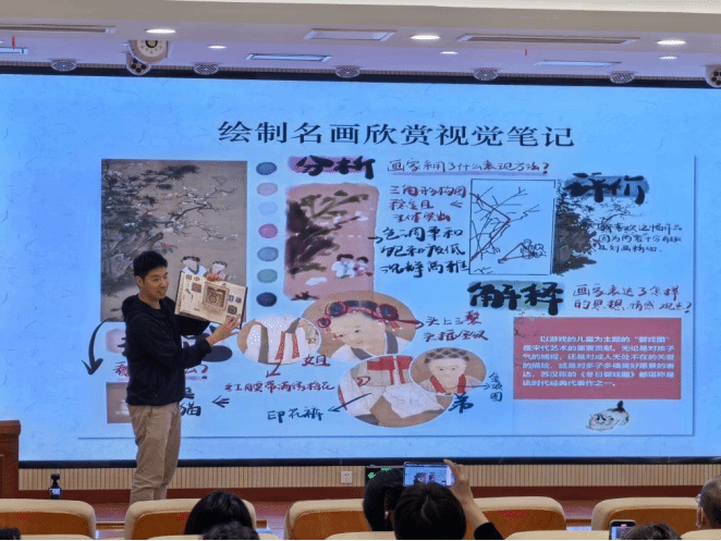 18日,徐老师围绕“聚焦中华优秀传统文化传承与创新的美术欣赏课程设计与教学实践”展开分享。她结合丰富案例,深入剖析如何在美术欣赏课程中巧妙融入传统文化元素,实现传承与创新的有机统一,让传统文化在新时代焕发出新的活力。