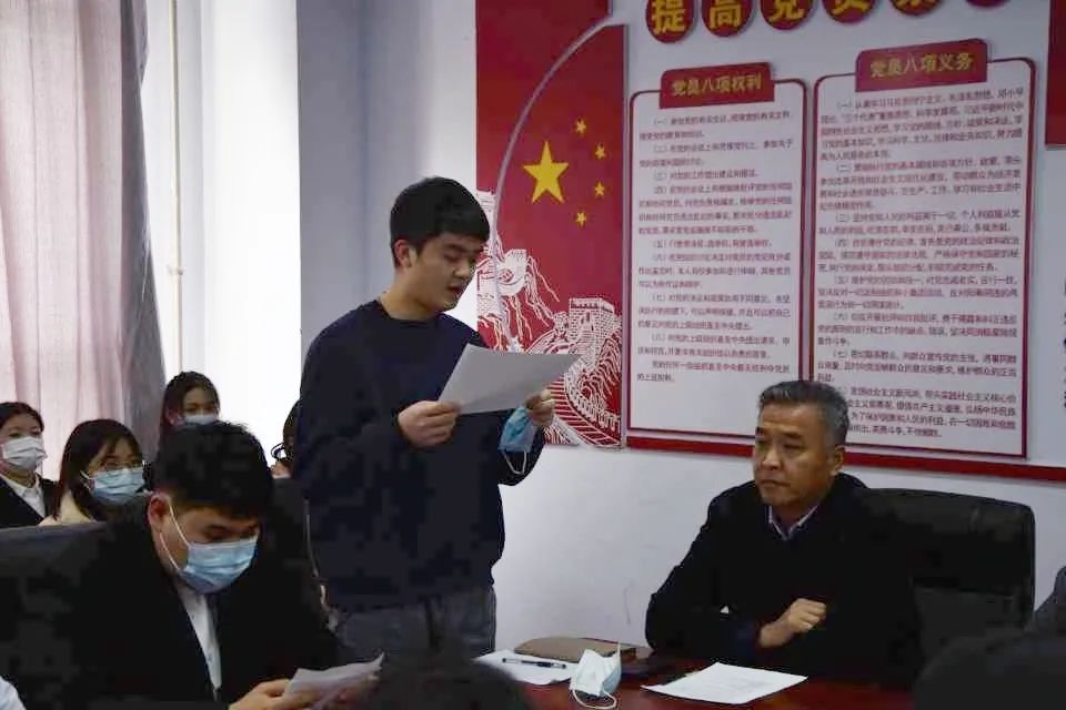 党员代表白剑同学发言,他表示新党员的加入壮大了党组织的力量,我们将同这些预备党员一道携手共进、努力学习、不忘初心,为我们党的事业做出应有的贡献。