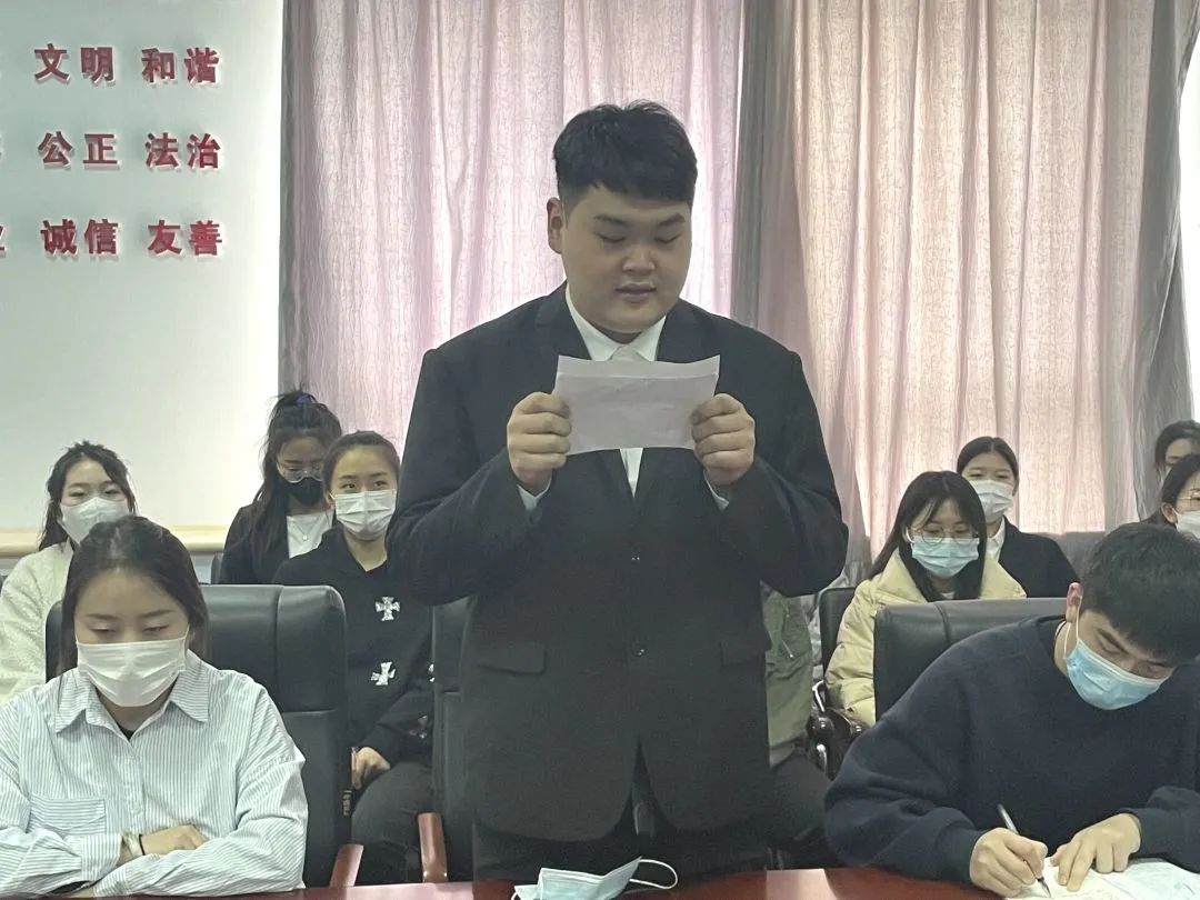 新发展预备党员代表张家正同学发言,他衷心感谢组织的培养,表示今后一定要更加坚定理想信念,不断提升自己思想政治素养,全心全意为人民服务,在学习和生活中充分发挥党员先锋模范作用,为鲜红的党旗增光添彩。