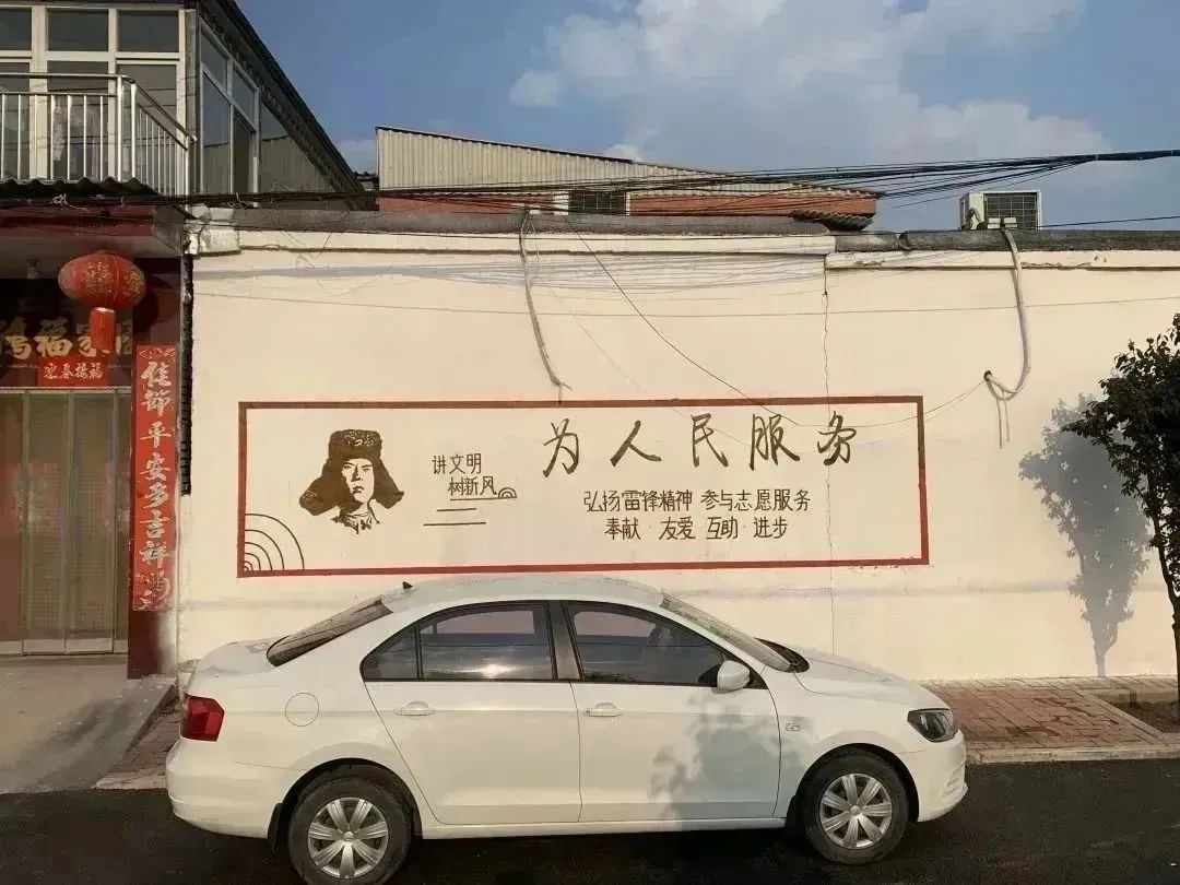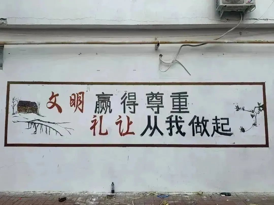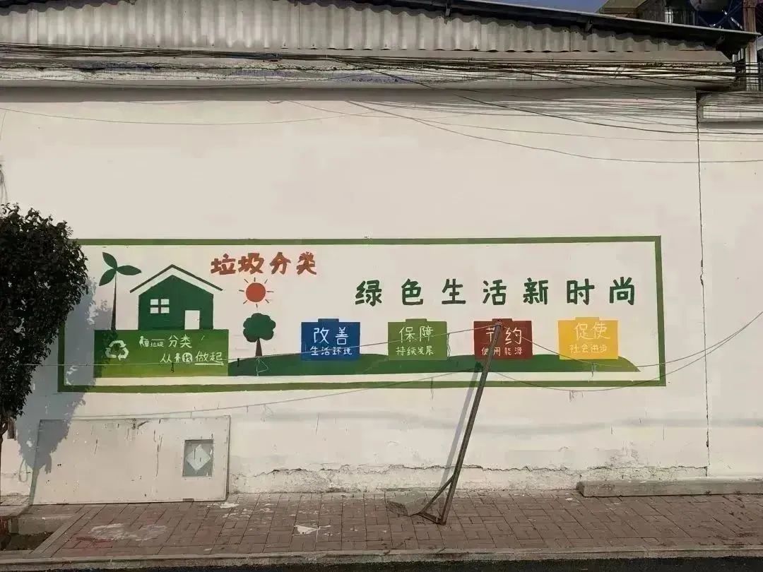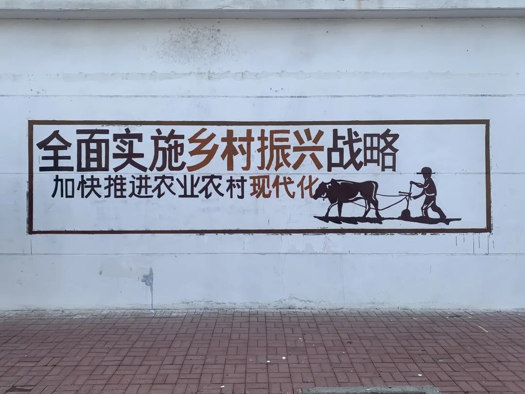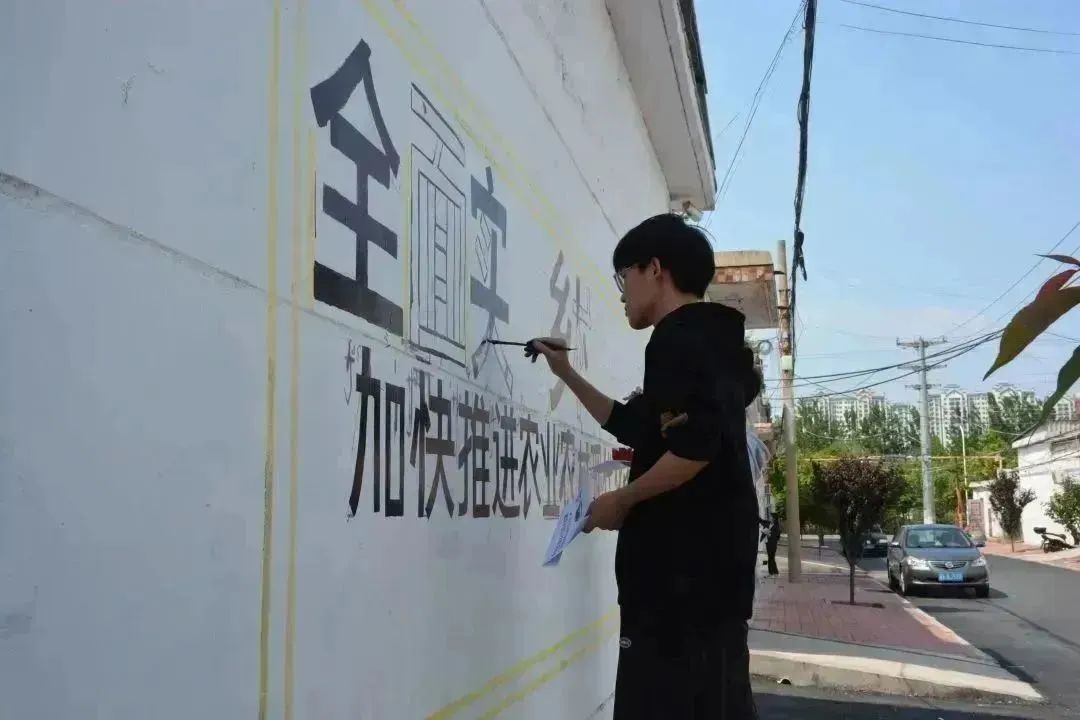 赵雨佳老师除了现场指导之外,也参与到标语书写中,和同学们一起完成墙面的绘制。经过两天的反复打磨,一幅幅以“社会主义核心价值观”“全面实施乡村振兴战略”“垃圾分类”“关爱未成年”等为主题的图画跃然墙上,在保留了乡村气息的同时,让原本斑驳、老旧的墙壁变得色彩斑斓、多姿多彩。