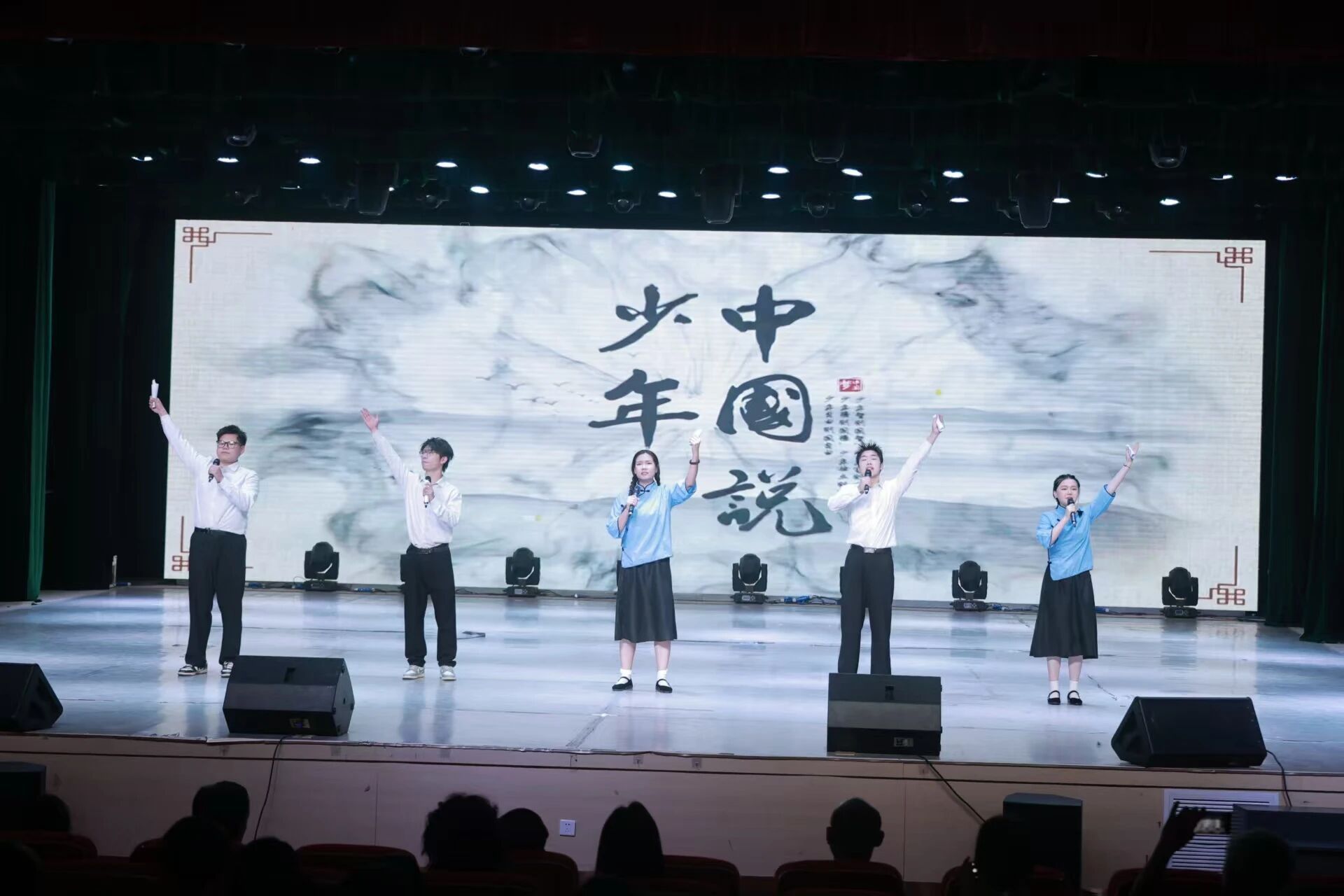 张译文、贾思怡、许孟涵、沈阳、黄子硕共同演讲的《少年中国说》,这场仿佛跨越时空的对话,接过了先贤前辈们对中国未来的坚定信念和无限期望。“故今日之责任,不在他人,而全在我少年”这一思想的传递和出色的表现获得评委与观众的一致认可,掌声回荡在现场的每一个角落。