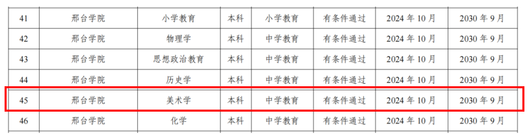 近日,教育部办公厅下发《关于公布2024年通过普通高等学校师范类专业认证及认证中期审核专业名单的通知》(教师厅函〔2024〕20号)。经高校申请、教育评估机构组织专家考查、普通高等学校师范类专业认证专家委员会审定,我院美术学专业顺利通过第二级专业认证,认证结论有效期为2024年10月至2030年9月。