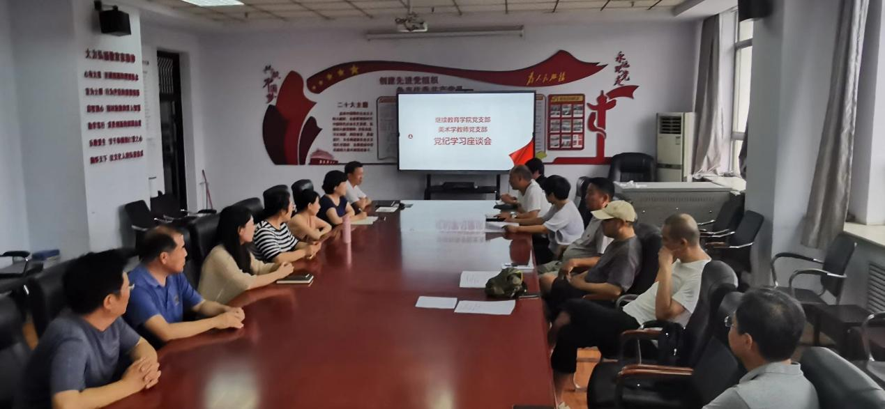 7月1日下午,美术与设计学院党委与继续教育学院党支部联合组织党纪学习主题党日活动,美术与设计学院党委书记李朝霞、院长韩壮、党委副书记孟贵祥,继续教育学院党支部书记武立民、院长吕杰以及两个单位的党员教师参加此次活动。