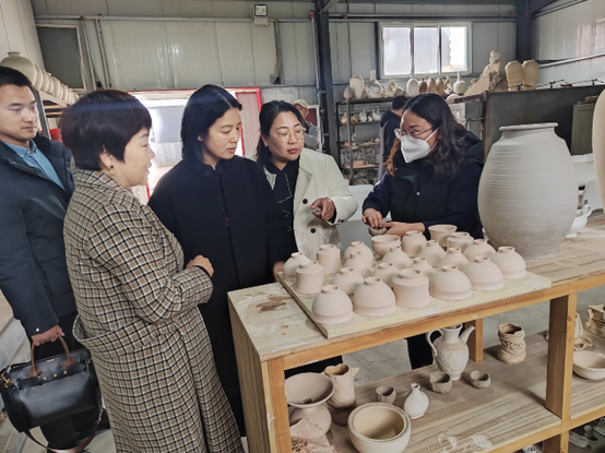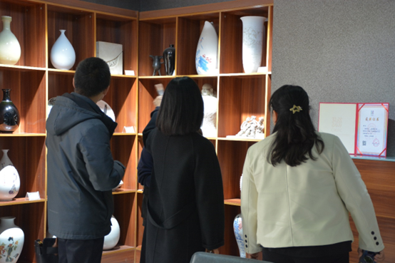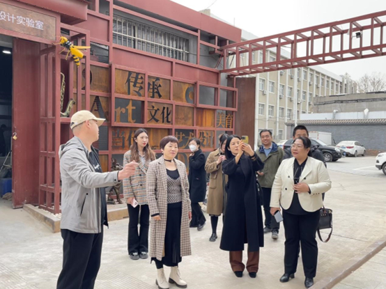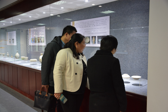 在李书记的带领下,来访客人们参观了校园文化艺术街区和邢窑文化园,在金属与瓷器、复古与纯净的碰撞下,此次参访之旅充满了浓厚的艺术气息。来访老师们认真聆听讲解员的介绍,参观陶瓷拉胚捏塑设备和技术,欣赏白瓷烧制技艺墙绘,领略邢瓷艺术精品。