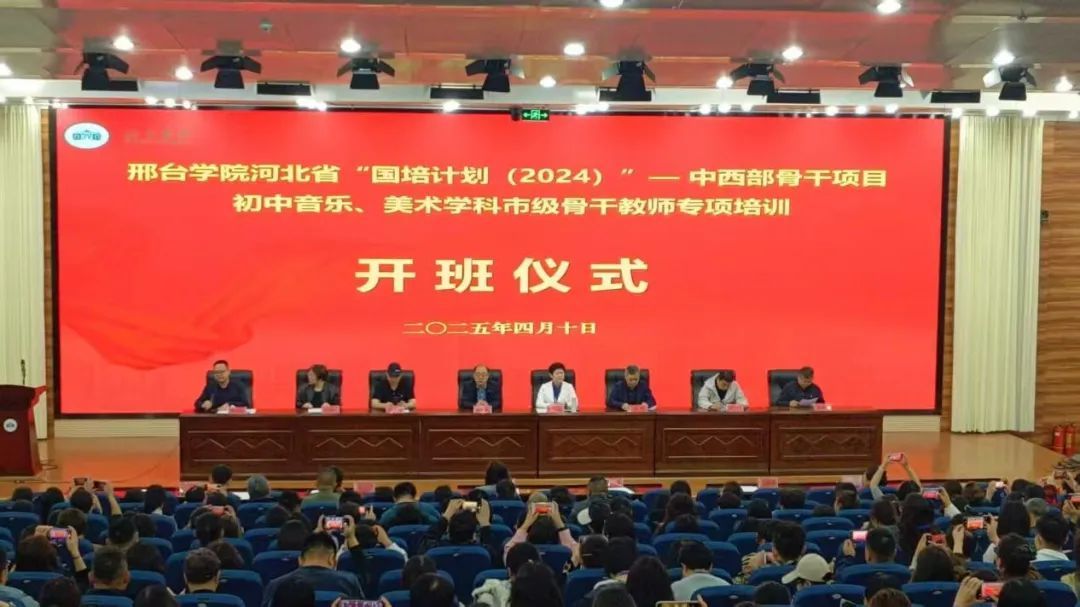 2025年4月10日,由邢台学院艺术学部美术与设计学院承办的“国培计划(2024)--省级骨干教师培养对象培训(初中音乐、美术)”正式开班,来自全省各地的300名市级骨干教师齐聚一堂,开启为期20天的专业化、高规格研修之旅。继续教育学院党委书记武立民、继续教育学院院长吕杰、美术与设计学院院长韩壮、音乐舞蹈学院院长刘兴武、音乐舞蹈学院党委副书记尹川、美术与设计学院党委副书记胡晓敏参加了开班仪式,教师教育学院副院长邓小龙主持了开班仪式。