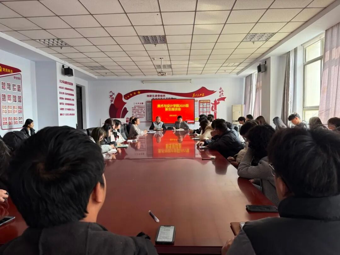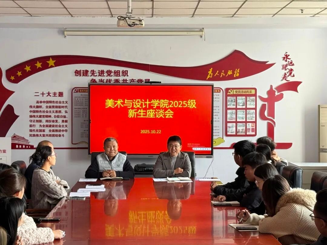 为深入落实立德树人根本任务,全面了解2025级学生入学适应情况,精准回应学生成长诉求,美术与设计学院于2025年10月22日召开2025级新生座谈会。学院党委书记杨群波、党委副书记胡晓敏、学管办主任成全林、2025级辅导员秦智琦及美术学、视觉传达设计、工艺美术三个专业的学生干部和学生代表共计40余人参会。会议由秦智琦主持,围绕党团员发展、专业学习、考研就业、转专业、日常生活等议题展开深入交流,为学生成长成才指明方向。