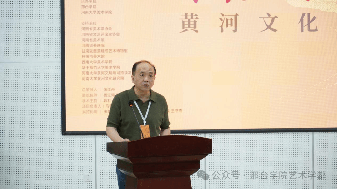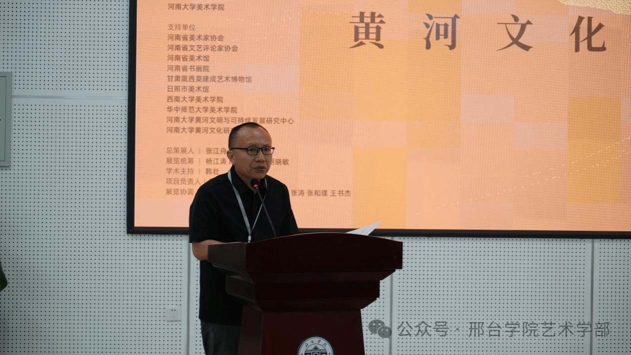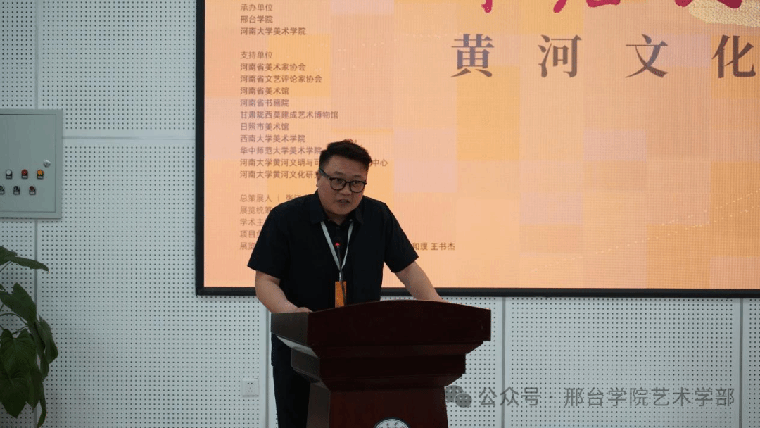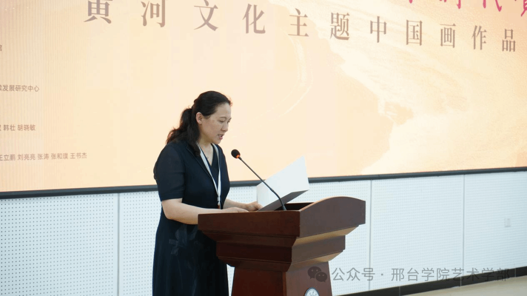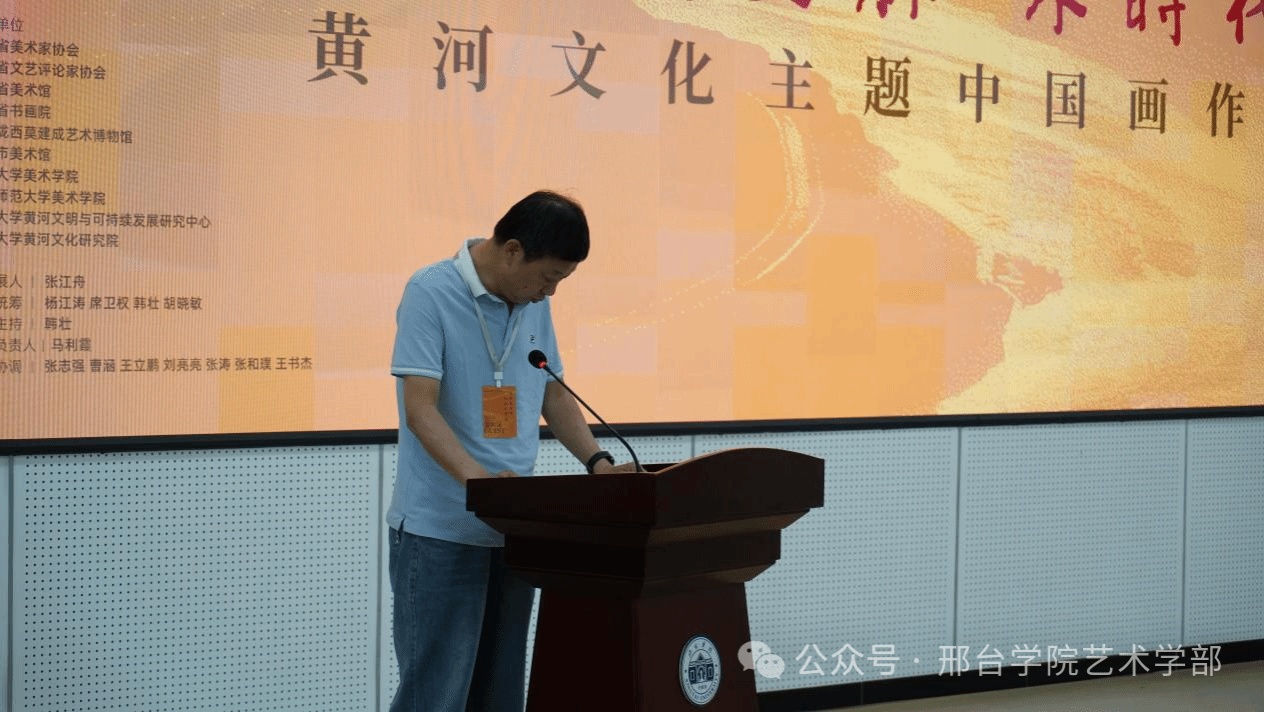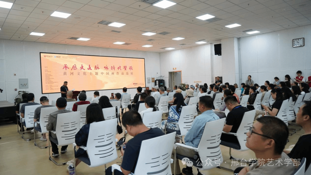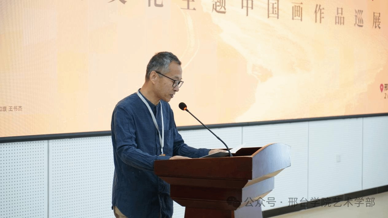 河南大学美术学院院长席卫权教授介绍了河南大学美术学院的基本概况,表示选择邢台学院作为巡展的重要一站,期待以此为纽带,进一步深化两校在艺术创作、学术研究、人才培养等领域的合作;推动两地学界围绕黄河文化的核心精神、艺术表达创新、历史文脉的当代表达等课题展开深度对话,碰撞思想火花;促进高等美术教育的交流互鉴,为邢台学院、河南大学乃至更广泛区域的美术教育工作者和莘莘学子,搭建观摩学习与交流的高水平平台,共同探索中国画教学创作的新理念、新路径。